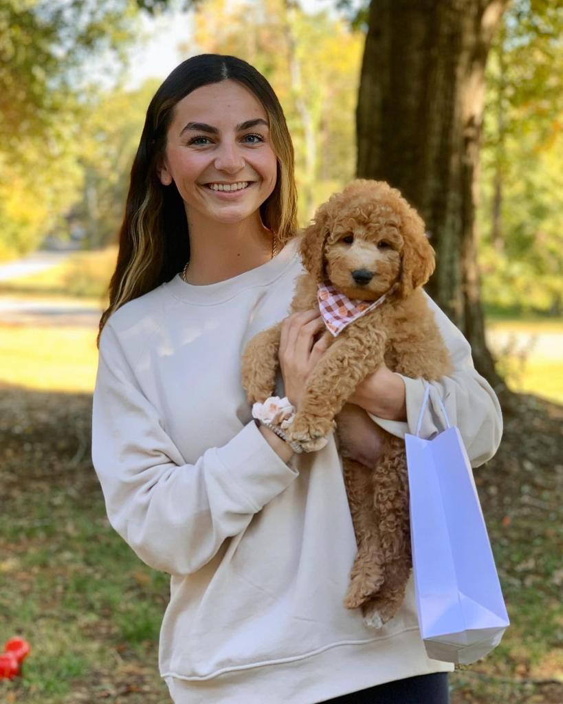 We received our Goldendoodle, Lady, from Newdawn Goldendoodle. She has been such a great addition to our family. She loves being playful with the children but is also loving and enjoys cuddling next to us in the evening. She is a quick learner. Potty trained well, is a quick learner and training easily for other commands. I came across Newdawn Goldendoodle on google. George was so wonderful with communication and accommodated well with getting Lady to us. Lady had to be flown to us and George made sure everything was in order and that she would be safe on the flight to us. When she arrived Lady was in perfect health, clean, and happy. James was great about answering all of our questions, getting back to us in a timely manner, and followed up with us to be sure all went well and to be sure Lady was doing well with the transition. I would recommend Newdawn Goldendoodle to anyone that wanted a healthy family pet! They are great people and wonderful to work with.